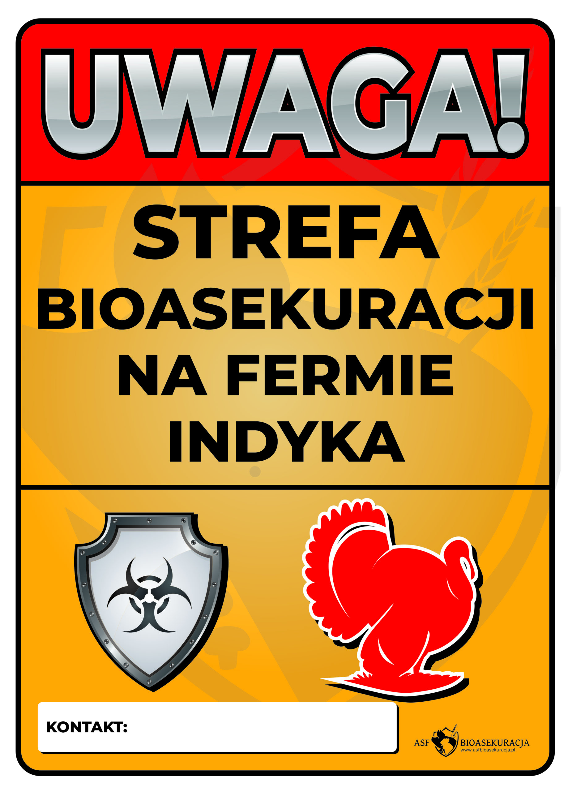 Tablica lub naklejka informacyjna „UWAGA STREFA BIOASEKURACJI NA FERMIE INDYKA”